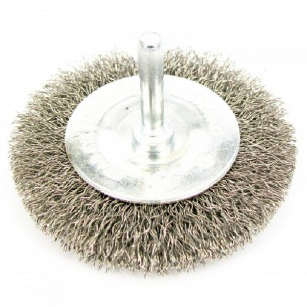 • 100mm single-row wire wheel with stainless steel wire on a 6mm spindle