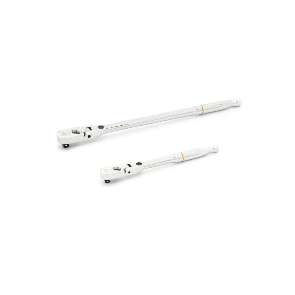 The GEARWRENCH 120XP™ ratchets take access and speed to the next level, making it easier and quicker to complete jobs. The double stacked pawl design gives 120 positions providing a 3 degree ratcheting arc. All of the ratchets feature a low profile head and flush mounted on/off switch, allowing better access in tight spaces. The ratchets are a bright, full polish chrome to resist rust & corrosion and have an enclosed head design which allows for extreme resistance to dirt infiltration. Available in standard and extra-long length handles.