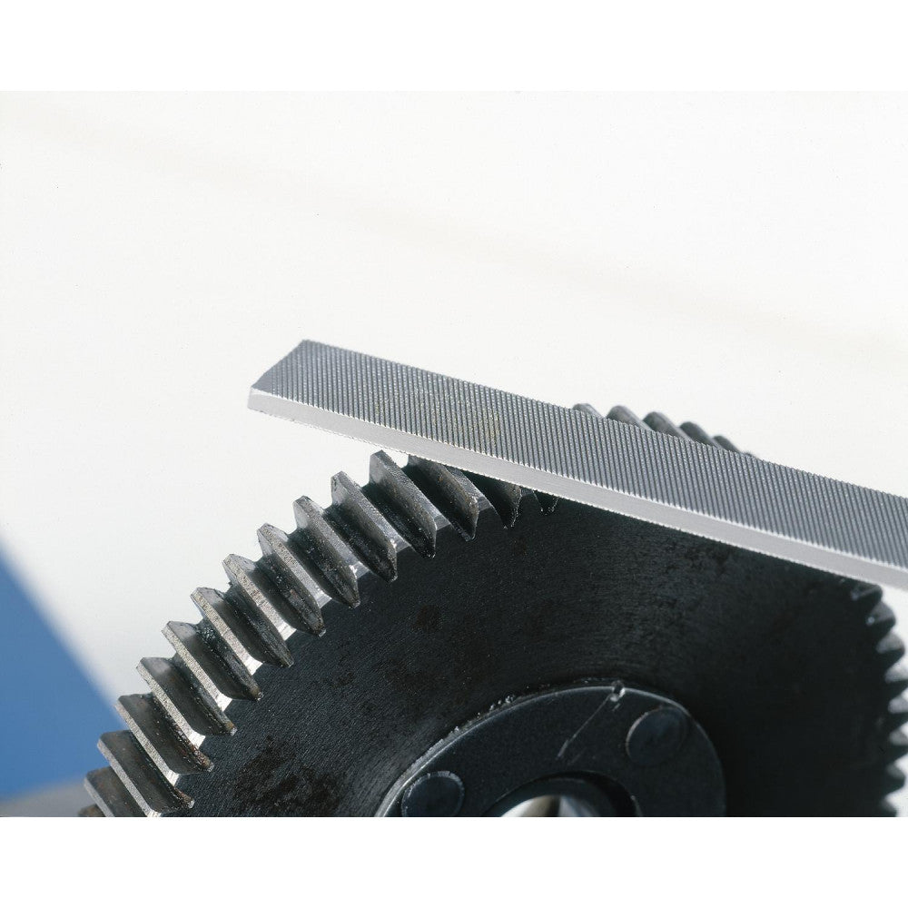 shoulders as well as for deburring. A double cut file should be used for work in high-alloy tool steels. Also useful for the sharpening of heavy implements. High removal rate.