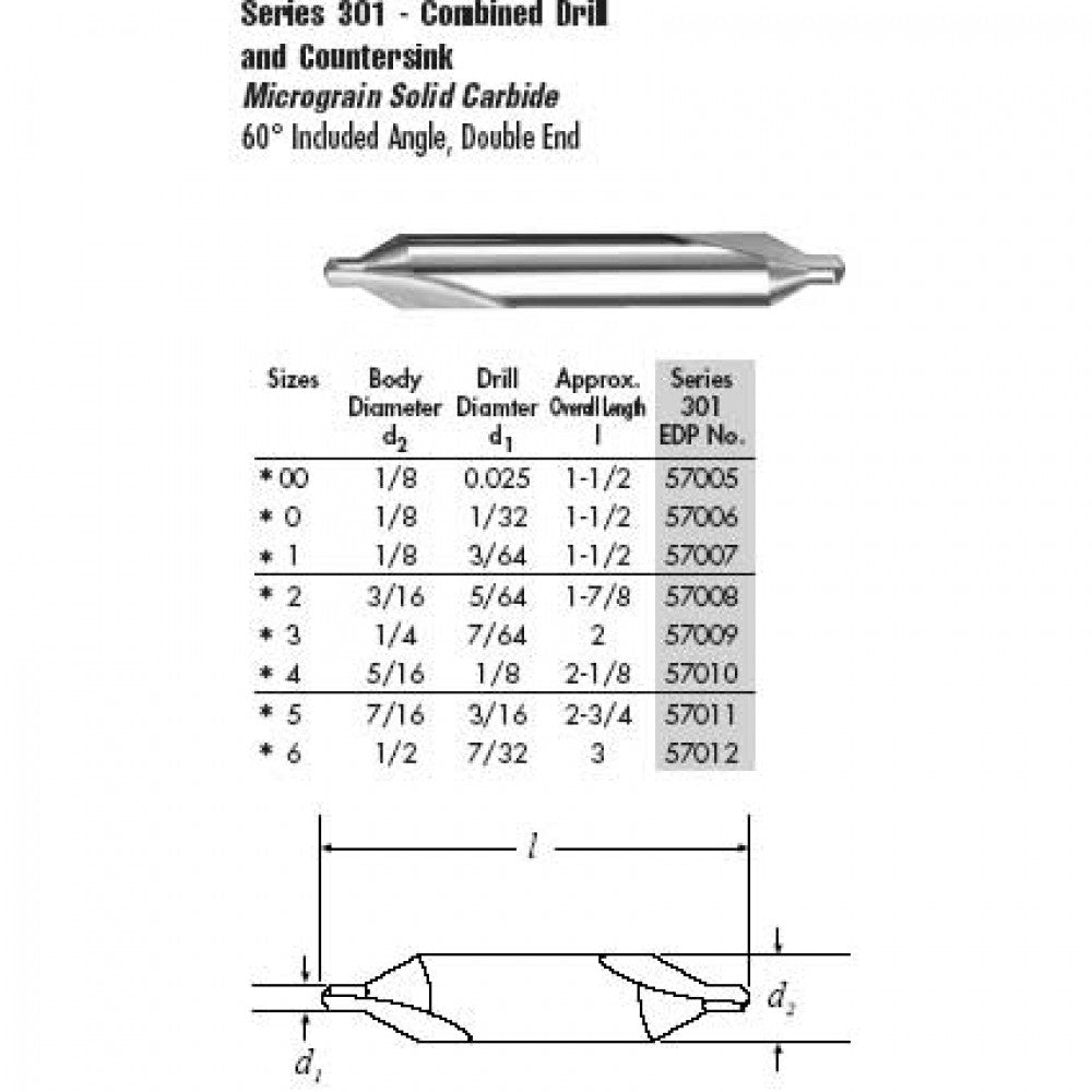 Micrograin solid carbide combined drill and countersink. 60° included angle.