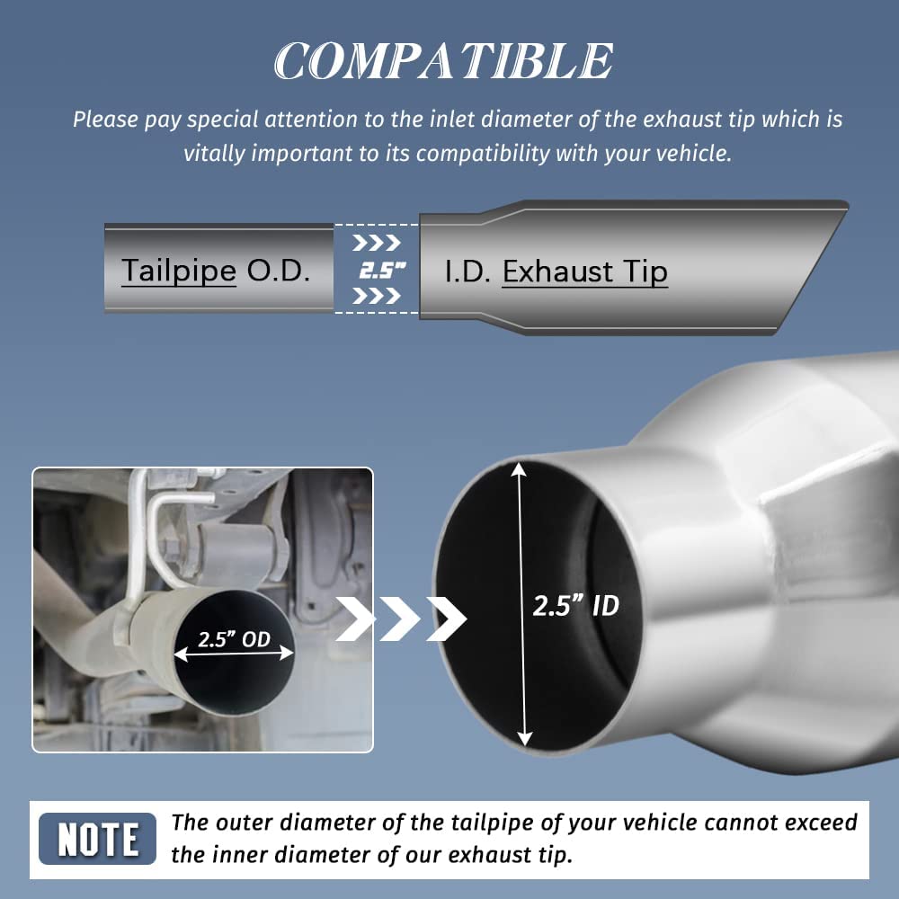 Material: AFB exhaust tips. Exhaust tailpipe tip made of 304 Stainless steel has very strong anti-corrosive, Never Rusty.