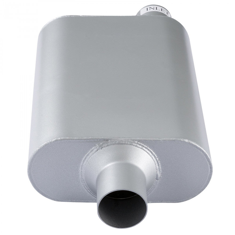 AFB universal 2.25-inch muffler for dual exhaust is fit on most vehicles, and only requires clamps or welding for installation.