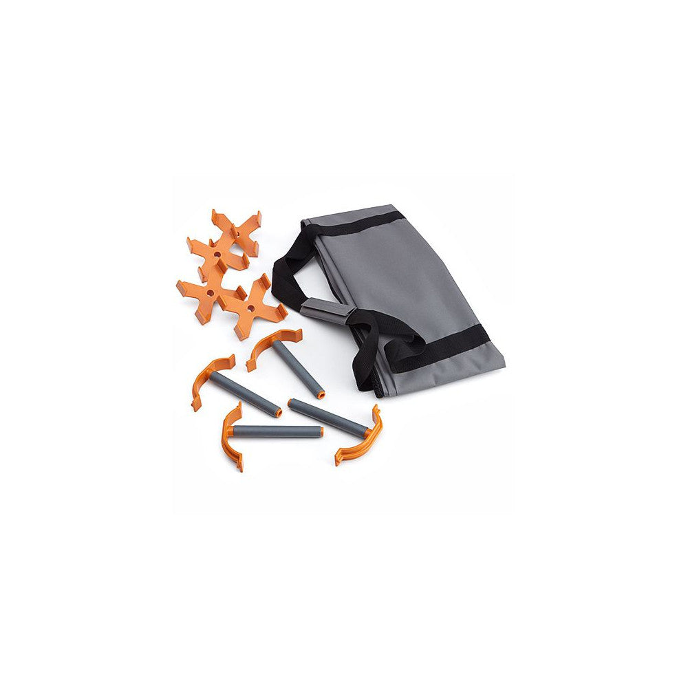 The Bora Centipede CK15S Workstand is the most flexible solution for your job site, workspace, or workshop. Key Features Create a 4ft x 8ft workstation with a 30" working height. Supports 6,000 lbs Includes 4 Quick Clamps, 4 X-Cups, and 1 Carry Bag Folded Dimensions: 9" x 15" x 38" Heavy-Duty Steel Construction: Struts are flexible to absorb the impact from heavy objects and machinery, and durable enough to ensure long-lasting, smooth operation. Durable Polymer P-Tops: P-Tops at each point of contact won't mark the surface of your project or let saw blades cause potential damage to struts. Room for Accessories: P-Tops feature 360-degree rotational spin and can accommodate all Centipede accessories to expand worksite capabilities. Table tops sold separately. Product uses four (4) table tops to cover entire surface area.