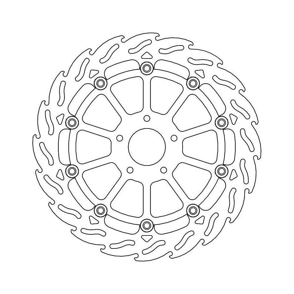 MAXIMUM CONTROL Flame shaped venting slots and outer perimeter ensure an equal amount of contact surface between the brake pad and disc throughout the whole rotation of the disc. This results in smooth and more predictable braking action which allows you to brake harder.