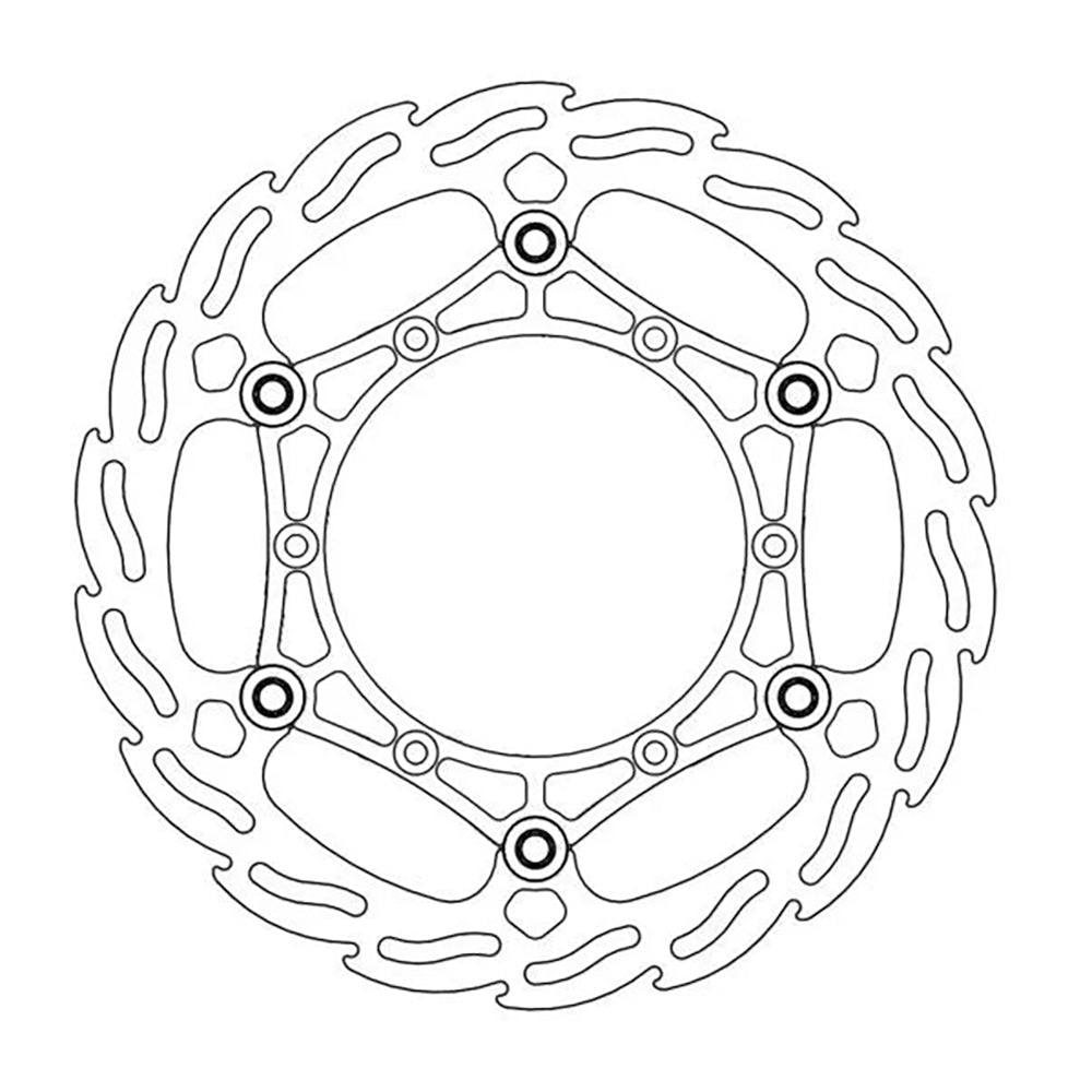 DESIGN MEETS PERFORMANCE Next to the premium quality steel alloy which is used to give Moto-Master brake discs unsurpassed friction characteristics and durability, much of the superior performance of a Moto-Master Flame disc lies embedded within its unique FLAME design. MAXIMUM CONTROL Flame shaped venting slots and outer perimeter ensure an equal amount of contact surface between the brake pad and disc throughout the whole rotation of the disc. This results in smooth and more predictable braking action which allows you to brake harder. OPTIMAL COOLING & REDUCED WEIGHT Flame shaped venting slots are lined up in the linear direction of movement which allows oversize slots without them chipping away at the brake pads. DISC & BRAKE PAD CLEANING The Flame shaped outer perimeter and venting slots overlap to continuously clean the whole brake pad contact surface while hot gasses are immediately evacuated. REDUCED BRAKE PAD WEAR The Flame design ensure the brake pads are always evenly supported on the rotor surface. This prevents the pads from tilting under high pressure. SUPERIOR DISC FINISH Specialized laser cutting technologies provide a razor sharp cut which won?t corrode. Disc thickness is parallel within a 0.003mm margin. This eliminates any possible brake lever pulsation while giving unsurpassed rider feedback.The Flame range is huge and covers everything from Motocross minibike to Dakar, and from Scooter to Superbike racing. Road / Road Racing / Offroad / Rally / Supermoto / ATV