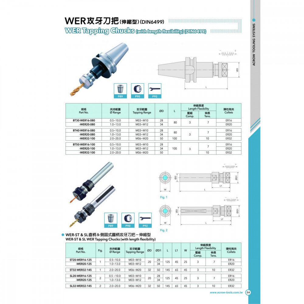 Tapping Chuck with length compensation. Takes ER20 Tapping Collets. BT30 Shank.