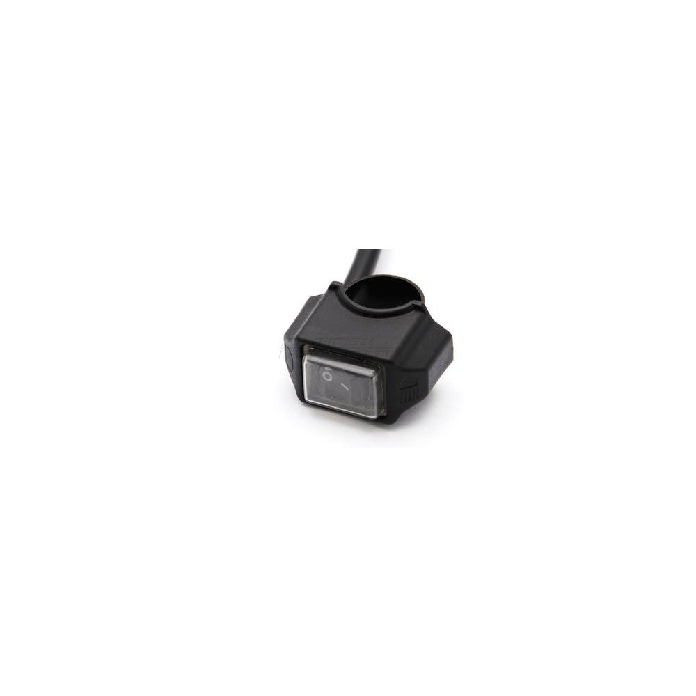 Splash-proof On/Off switch for mounting on the handlebar. The particularly compact design in a break-proof plastic casing make it easy to use as a light switch for the auxiliary lighting or as an on/off switch for your GPS navigation system.