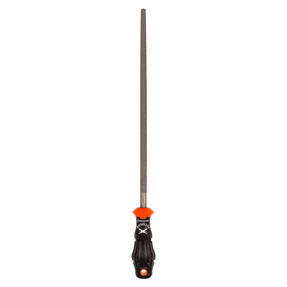 The Crescent Nicholson American pattern, round bastard cut files features a circular design with teeth all the way around. These files can be used to file circular openings or concave surfaces. The single-cut construction provides light removal of material and slightly smoother edges. The slight taper in width towards the file's point creates ease of access in slots. Crafted from metal, the file's construction offers strength and durability.