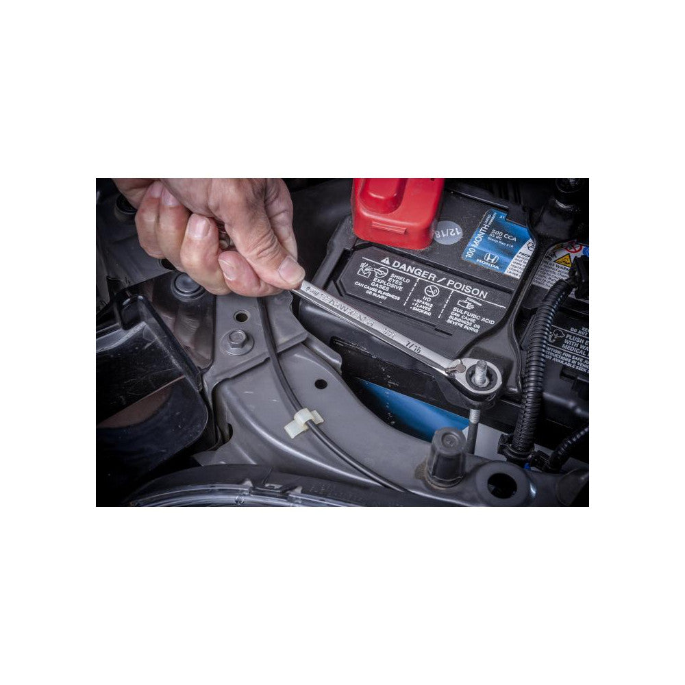 - Low-profile reverse lever quickly switches from forward to reverse without removing the wrench
