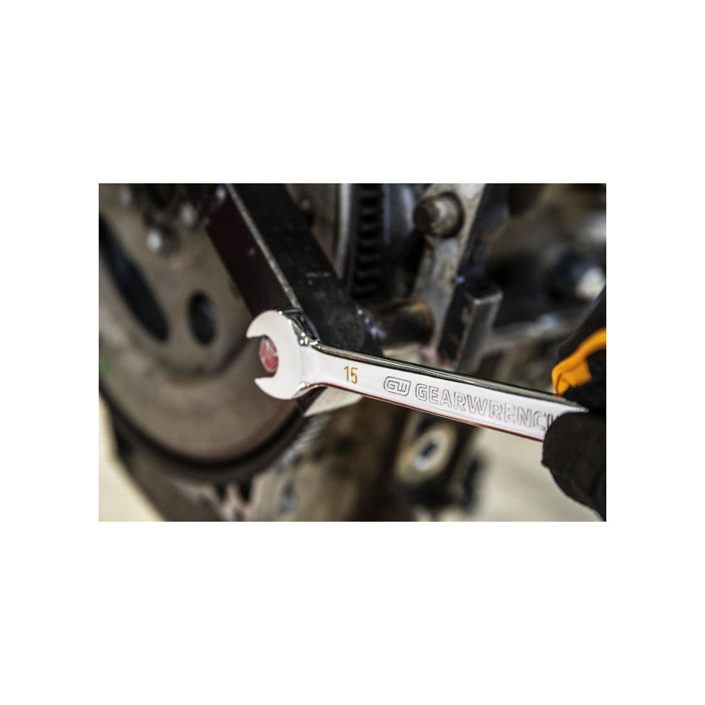 GEARWRENCH 90-tooth ratcheting wrench swing arc of just 4° turns fasteners in extremely tight spaces. Longer, wider beam delivers improved reach, leverage, and comfort. Large color-coded SAE/metric markings make size identification easy. All exceed ASME performance specs and come with the trusted GEARWRENCH Full lifetime warranty.