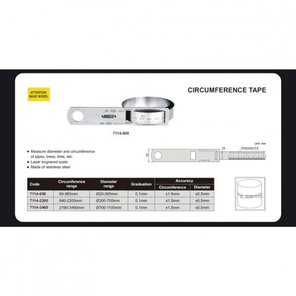 Diameter Tape 20-300mm x 0.1mm Circumfrence 60-950mm S/Steel Insize 7114-950