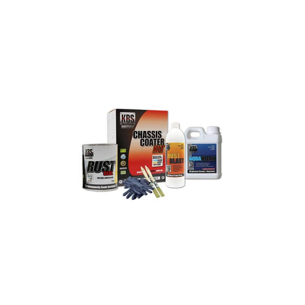 The KBS Chassis Coater Kit contains everything you need to clean, prep & apply two coats of RustSeal on up to a 5.5m2 area.