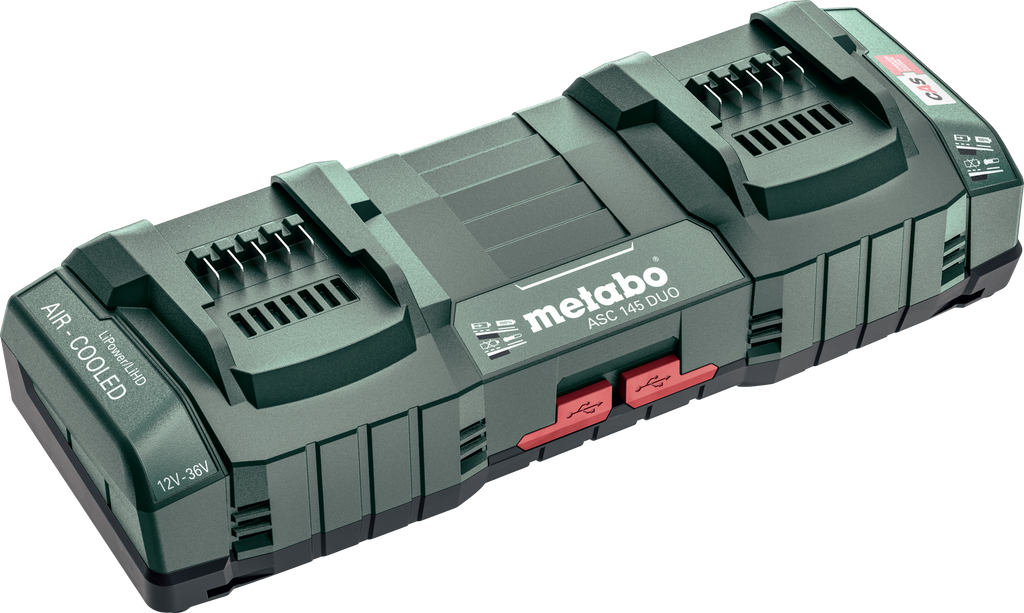 Metabo ASC 145 DUO 12-36 V Quick Charger is a dual charger that charge in less time with its Air Cooled technology.