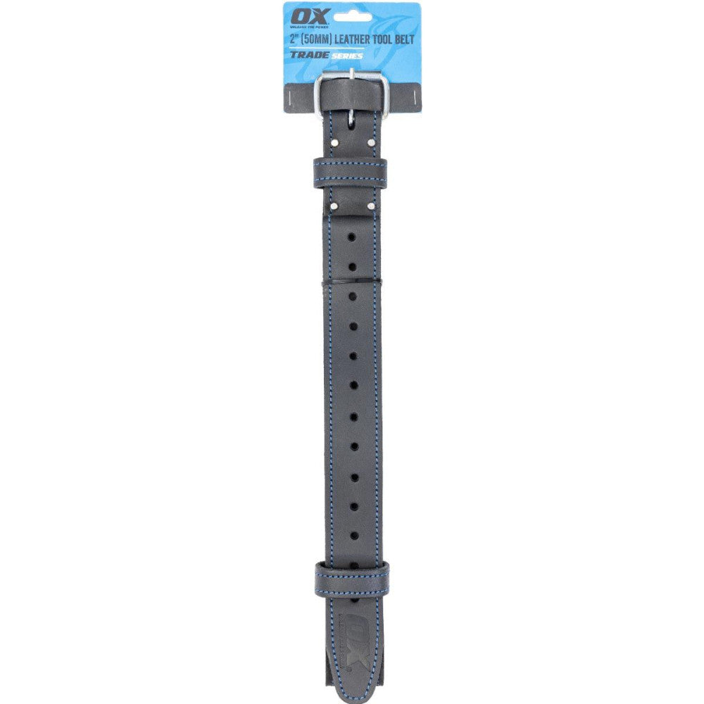 • 2" (50mm) leather work belt• heavy duty oil tanned split leather• thickness: 3mm +• roller buckle • water resistant nylon stitching • single row holes • nickel rivets