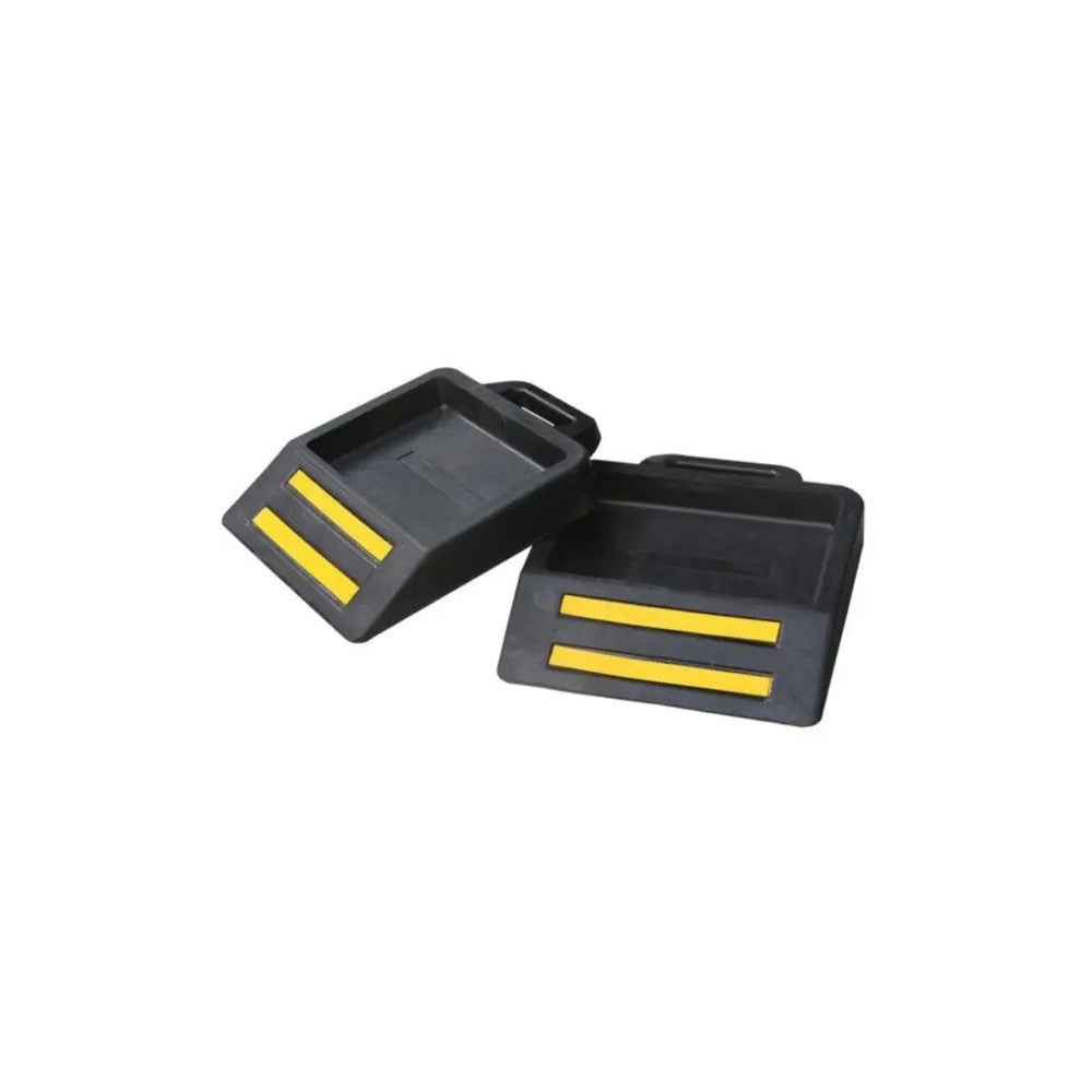 Colour: black, These wheel chocks are for holding pallet trucks still in moving trucks and trailers. They are manufactured from a high quality rubber and also include a handle for easy handling. They are ideal for logistics and freight companies as moving pallet jacks can cause serious damage.