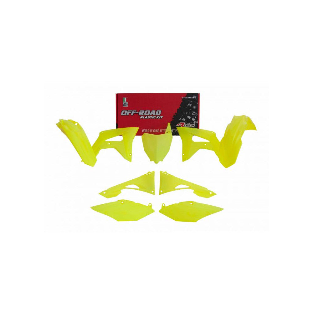 Plastics Kit Rtech {Incl Front & Rear Fenders, Radiator Shrouds, Sidepanels, Air Box Covers & Front Number plate} Honda CRF450R 19-20 CRF250R 19-21 Fluro Yellow