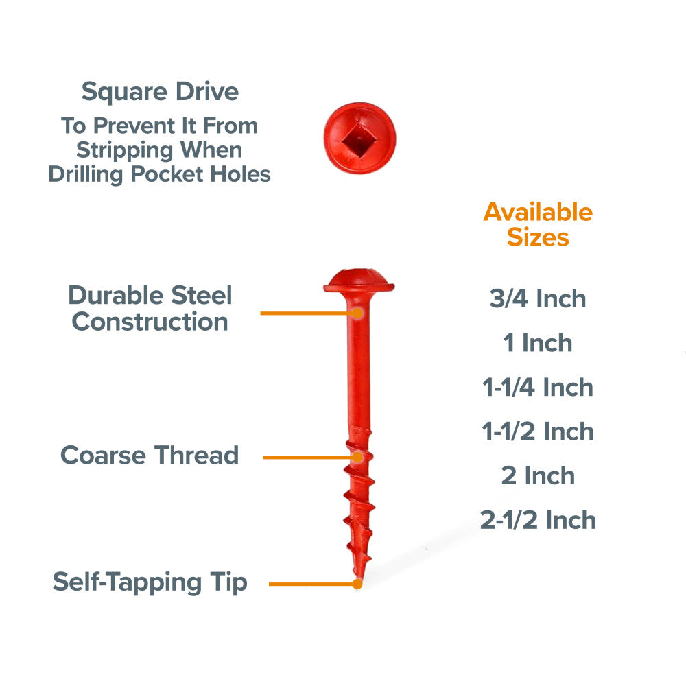 These 1-1/2-inch screws are perfect for pocket hole joinery projects.