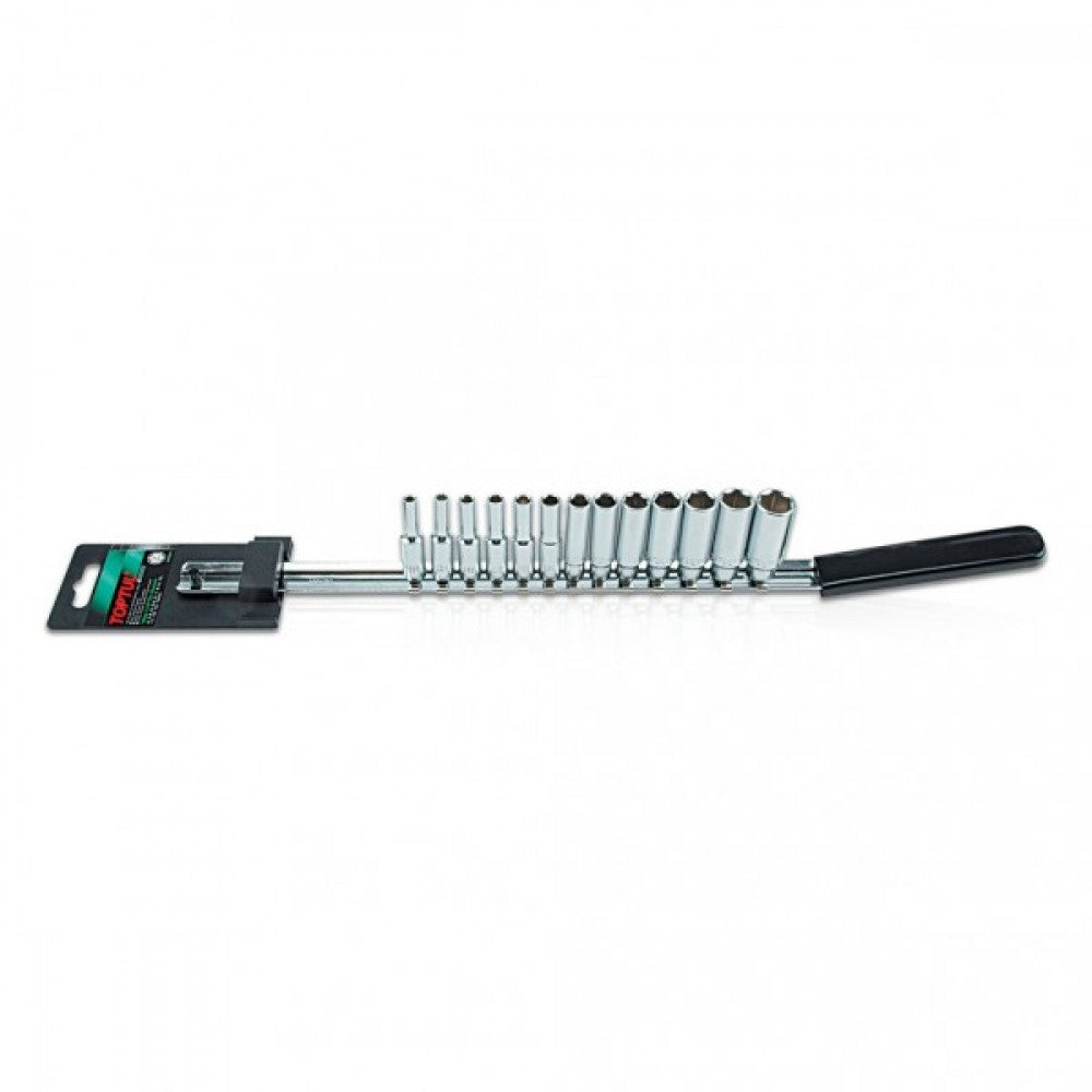 Socket Set On Rail 1/4"Dr 13Pce 6 Point Deep Metric 4-14mm Toptul GAAQ1309
