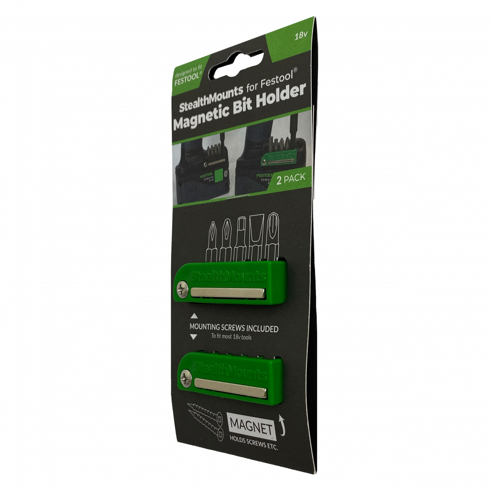 StealthMounts magnetic Bit Holder for Festool 18v tools fix to the side of your tools to store impact bits andscrews. Made from strong injection moulded ABS plastic with a screw hole formounting. Magnet holds bits while tool is in use and can be mounted in anydirection. Extra bits and screws can also be stored on the side using thestrong built in magnet. Save time and never lose an impact bit again.
