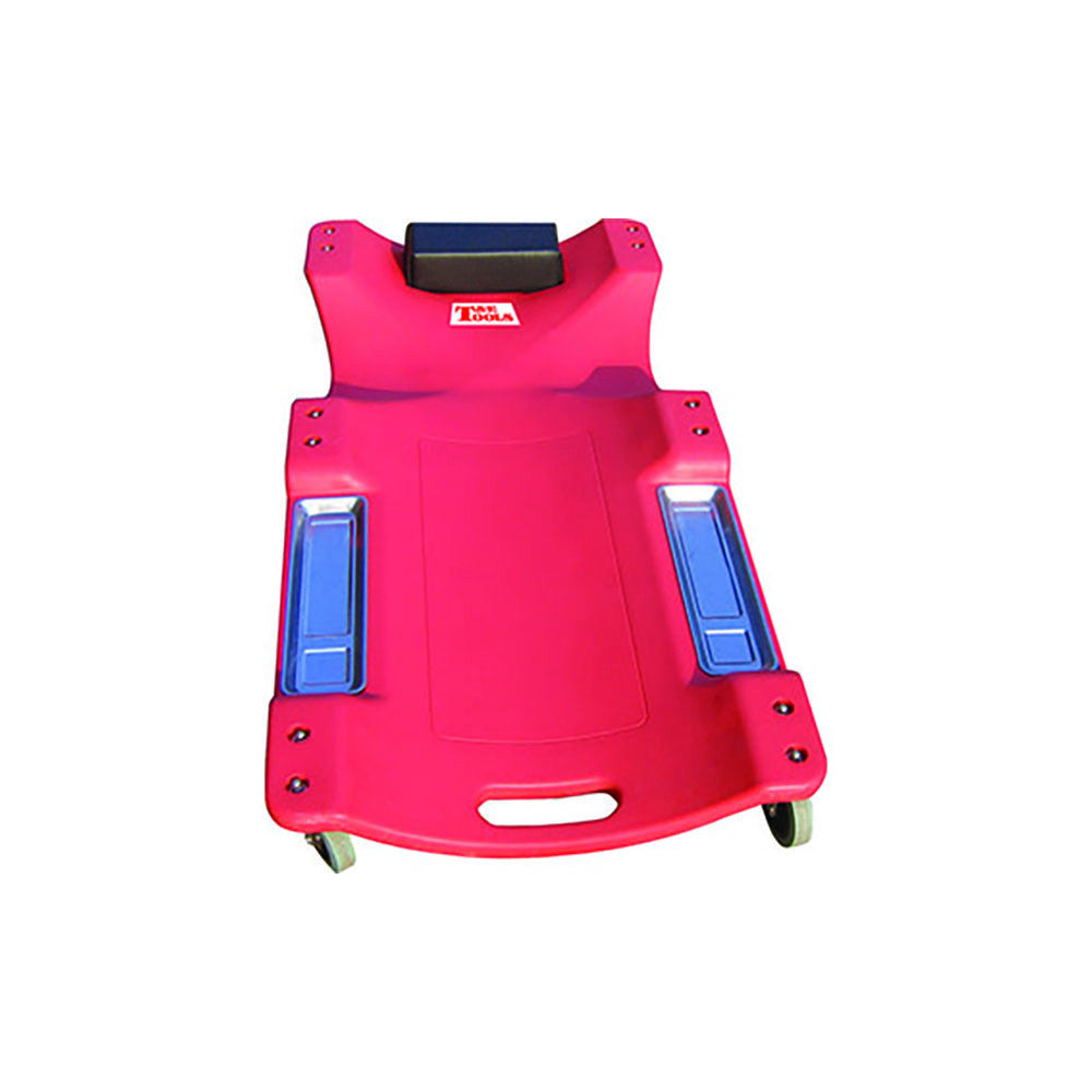 Two large magnetic trays will keep tools and parts together while working. Larger wheels enable the creeper to travel on rough and uneven surfaces yet maintains a low clearance.
