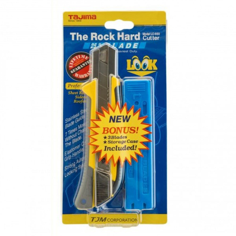 Super heavy-duty, ultra-sharp, heavy-duty 25 mm wide x 0.7 mm thick rock hard 7-segment snap-blade